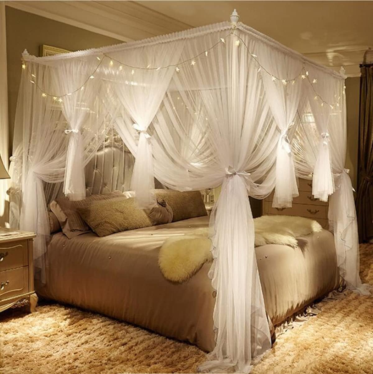 - Super Easy Installation with 2 ways to set up: Four corners with rope,Easy to distinguish direction,You can use hooks install the canopy easily into the ceiling OR hang it from the corners of your four-post bed for an added touch of style and elegance.